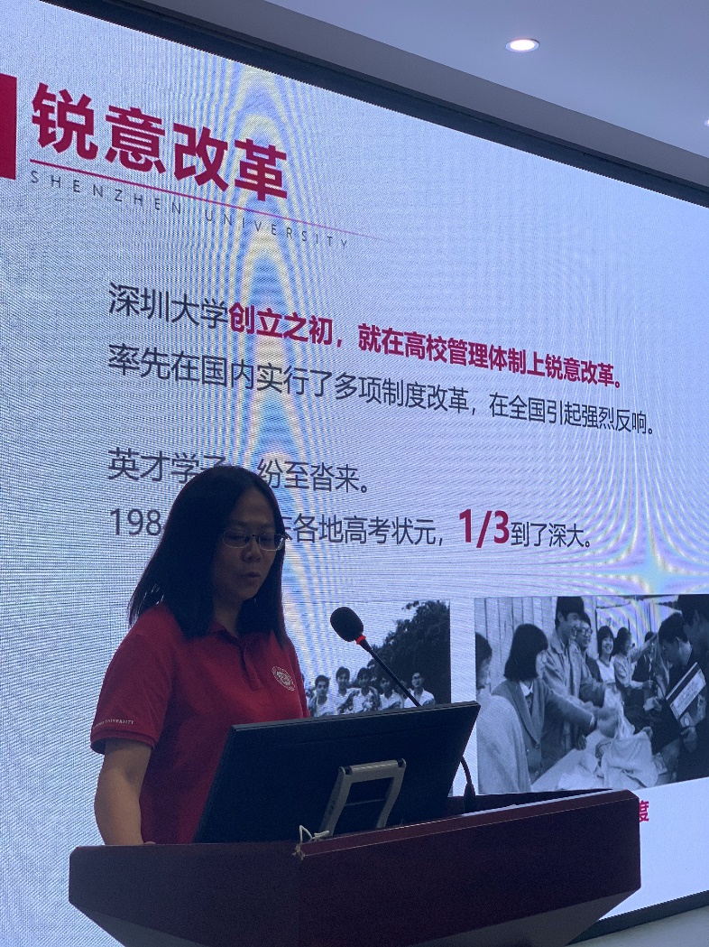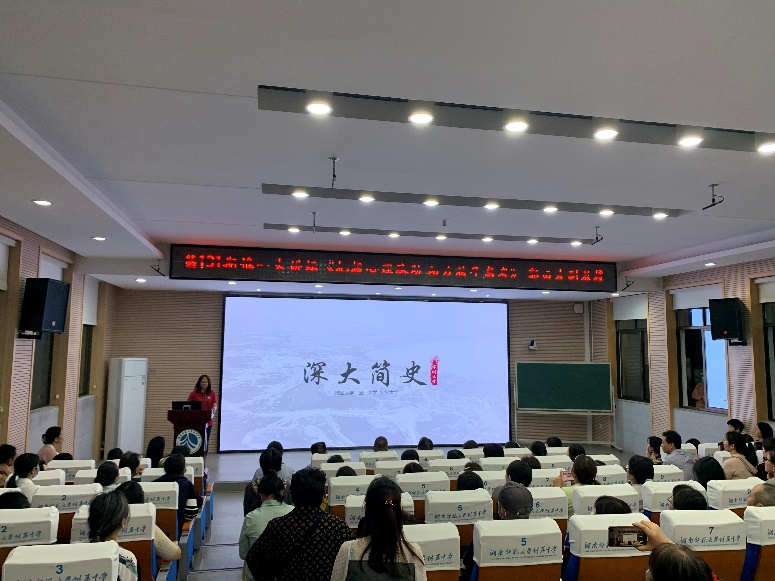 讲座结束后,焦璨副院长又向湖师大附中的家长们介绍了深圳大学近年来的发展,从学习、科研、生活等多个方面展示了深大取得的成绩以及优势。