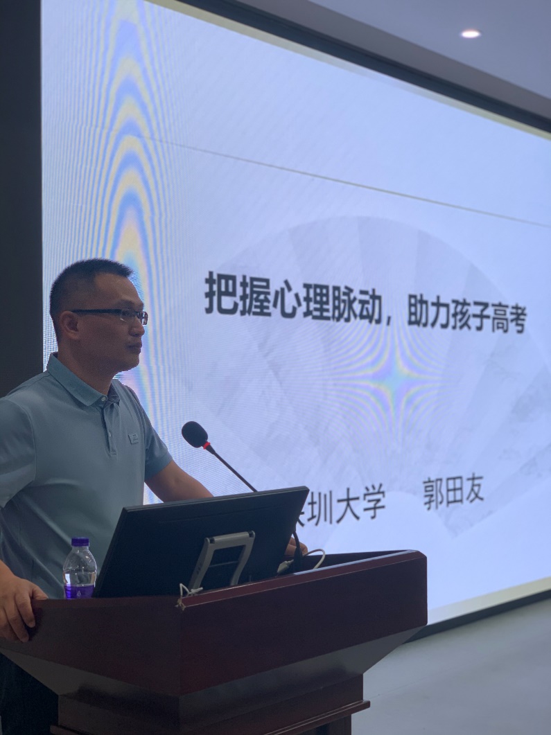 授牌仪式后,郭田友主任为湖师大附中的高三家长们带来主题为“把握心理动脉,助力孩子高考”的精彩讲座。郭田友主任结合自身多年心理咨询的经验和研究,从心理问题(情绪)产生的源头--大脑神经出发,从感觉、思维层层递进,引出各种心理问题的表现形式。郭主任通过大量生动鲜活案例,深入浅出地为家长们分析了高三学生常见的心理问题,并给出了有效的应对措施。