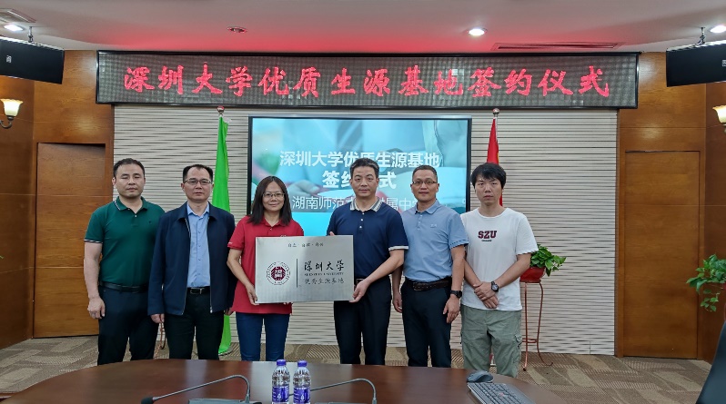 为进一步加强我校与中学的联系,拓宽我校与中学的合作渠道,寻找优秀生源。2021年5月6日,深圳大学师范学院(教育学部)心理学院副院长焦璨教授、副院长邹立业教授、应用心理学系郭田友主任、本科教学秘书周晓博老师一行来到湖南省湖南师范大学附属中学这所百年名校,开展优秀生源基地签约等活动。