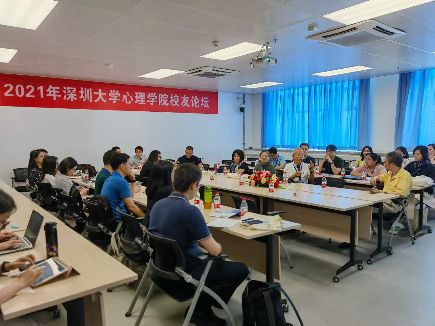 由深圳大学心理学院主办的“2021年第一届校友论坛”在深圳大学沧海校区圆满举行。本次校友论坛包括以下两项活动:5月15日下午举办的“校友茶话”交流会以及5月16日开展的“深大心声”学术论坛。退休教师和校友们回到学校参加了此次活动,师生欢聚一堂,畅谈在校时的学习与生活经历,分享毕业后的发展近况。此外,校友们还带来了精彩的学术报告,与在场师生共同探讨学术问题,碰撞思维火花。