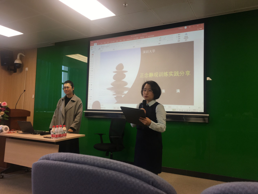2020年12月18日,我院邀牛津正念中心MBCT课程老师(美国正念领导力学院亚洲唯一导师)张满为学院师生做题为《正念训练的理论与实践》的课程分享,并与我院多名教师开展正念干预的研讨会。我院副院长焦璨教授、副院长邹立业教授、深圳大学应用心理研究和咨询中心主任卢宁教授以及学院部分教师和研究生、本科生参加了讲座和研讨会。本次活动由我院应用心理学系张洁婷助理教授主持。
