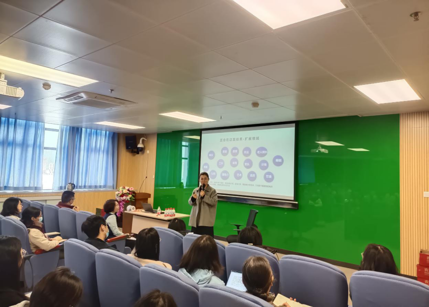 讲座结束后,老师们纷纷与张满老师进行交流,探讨正念在各心理学领域中的应用,并在下午召开了研讨会。张洁婷助理教授结合与哈佛医学院的合作研究方向,组织师生进行“头脑风暴”。各研究方向的师生从自身研究兴趣和专业优势出发,各抒己见,提出了许多新颖的研究设想。张洁婷助理教授探讨了预测正念训练效果的测量工具编制、跨国比较及其在青少年和特殊群体中的改良与推广应用。同时,邓欣媚副教授、迟新丽助理教授教授和江荣焕助理教授相继提出正念在中学生考前身心健康、社交技能方面的应用和研究前景,并探讨如何借助各种认知神经和生理指标来优化对正念状态和干预效果的测量。焦璨教授、邹立业教授在会上还强调了正念与身心运动的结合以及在老年人、运动竞技中的应用研究。张满老师也表达了对正念干预研究的兴趣,并期待进一步的实践与科研相结合。