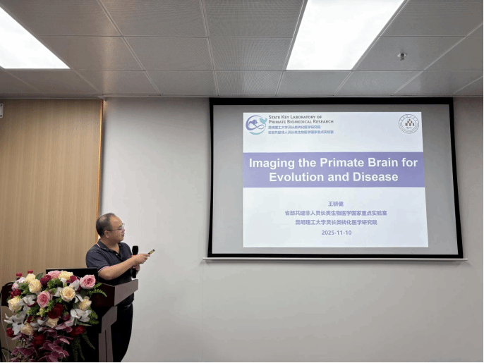 During the lecture titled “Imaging the Primate Brain: Evolution and Disease,” Prof. Jiao-Jian Wang discussed differences in brain structure and function between humans and non-human primates from the perspectives of neuroimaging and comparative neuroscience. His work aims to uncover how human brain evolution shapes cognitive functions and contributes to the mechanisms underlying neuropsychiatric disorders. Prof. Wang and his collaborators embedded anatomical features of human and macaque brains along a developmental timeline to construct a cross-species predictive model. They found that a model trained on macaque data predicted human chronological age with higher accuracy than a model trained on human data predicting macaque age. In addition, the research introduced an index of cross-species developmental age disparity to quantify differences along the neurodevelopmental trajectory. This index was significantly associated with behavioral performance in human visual acuity and picture vocabulary tests.