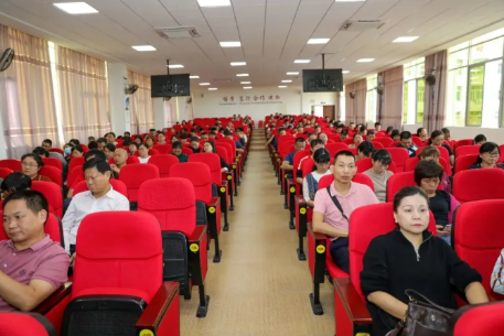 此次讲座由虎山中学副校长蓝增君主持, 三百多位教职员工以及大埔县教育局心理健康教育教研员和周边学校的心理老师出席了会议。