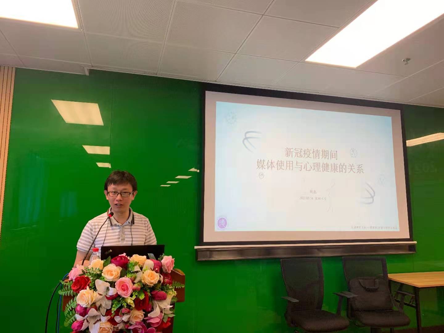 2008级校友刘拓(现为天津师范大学心理学部讲师、系主任)作了题为“新冠疫情期间媒体使用与心理健康的关系”的报告,探讨了负性情绪、疾病、死亡焦虑等变量和不同媒体的关系,发现从媒体获得的正面信息能够对缓解当下负面情绪。