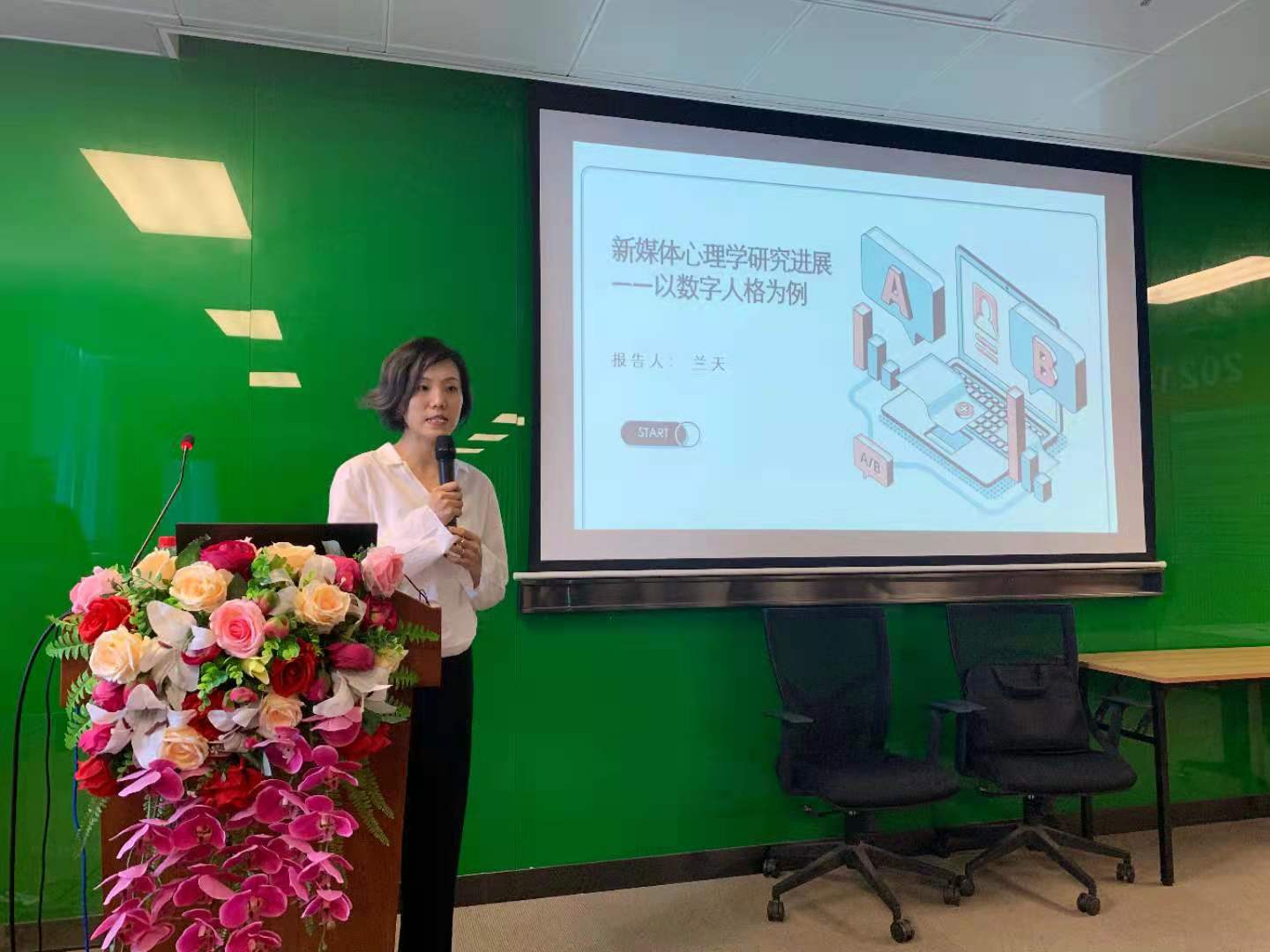 2009级校友兰天(现为清华大学新闻与传播学院博士后)作了题为“新媒体心理学研究进展”的报告,对新媒体心理学这一心理学与传播学的交叉领域作了简要介绍,并分享了这一研究领域的新进展。