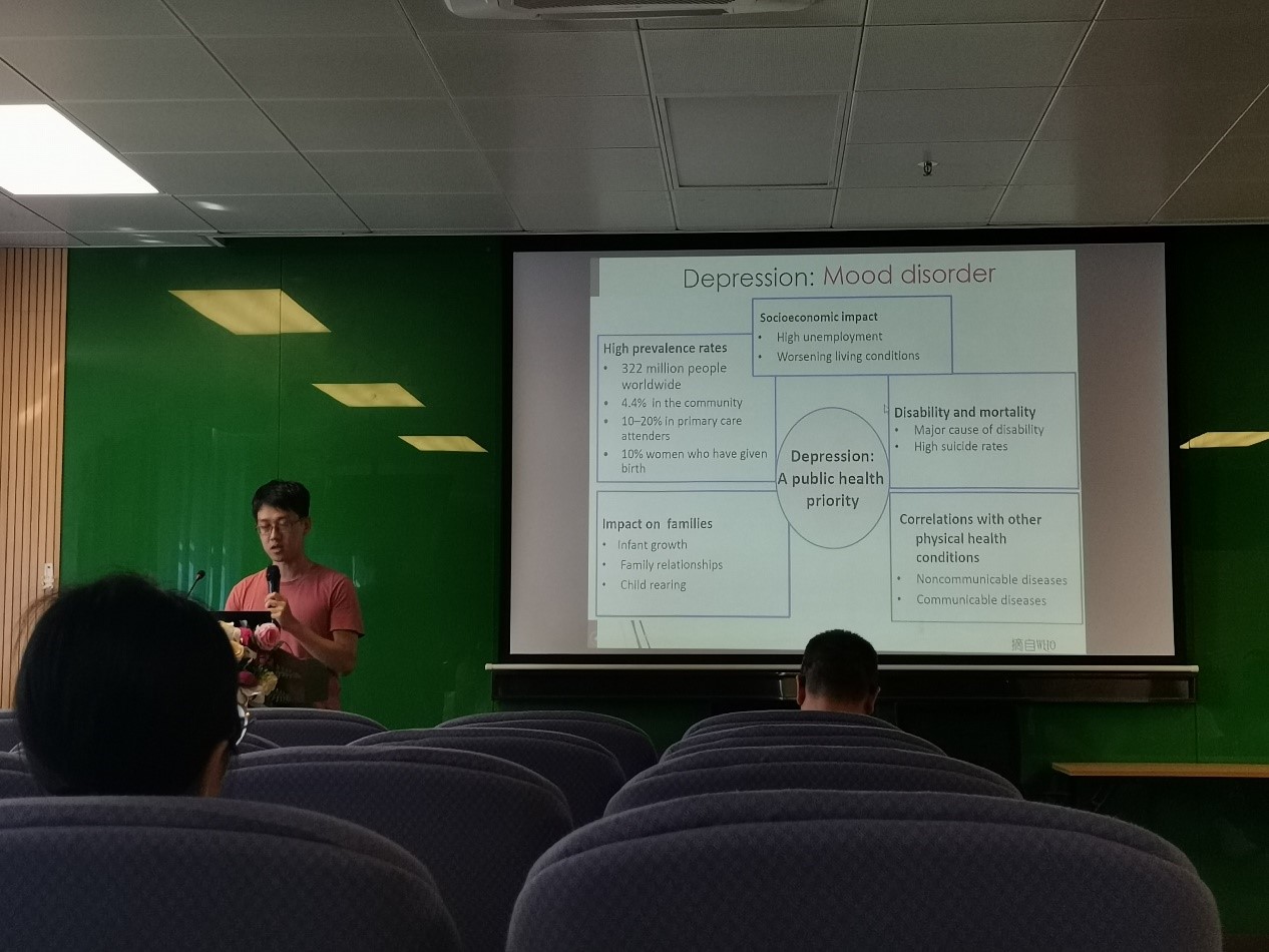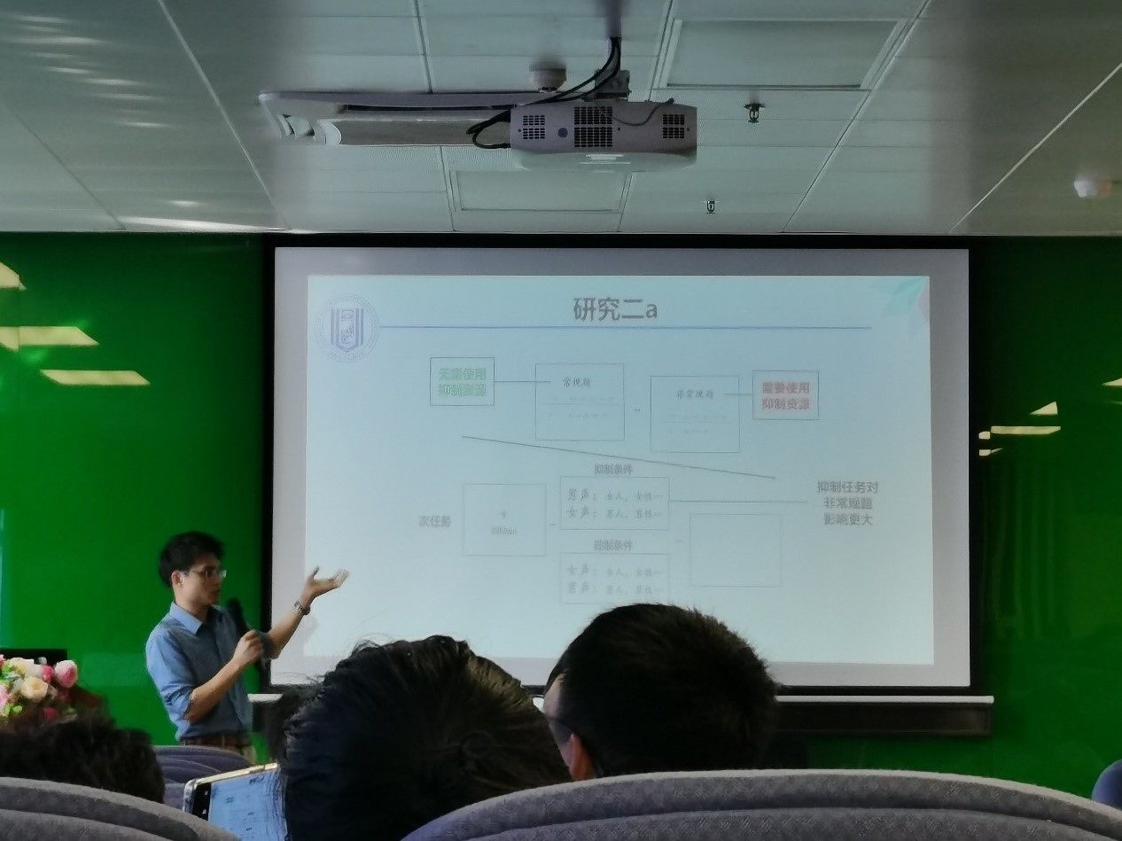 2014级校友何振宏(现为深圳大学脑疾病与认知科学研究中心助理教授)作了题为“抑郁个体的社会反馈加工缺陷”的报告,发现抑郁个体不仅在无意识水平的情绪加工中存在负性偏向和快感缺失的特征,在社会反馈的情绪调节上存在加工缺陷。