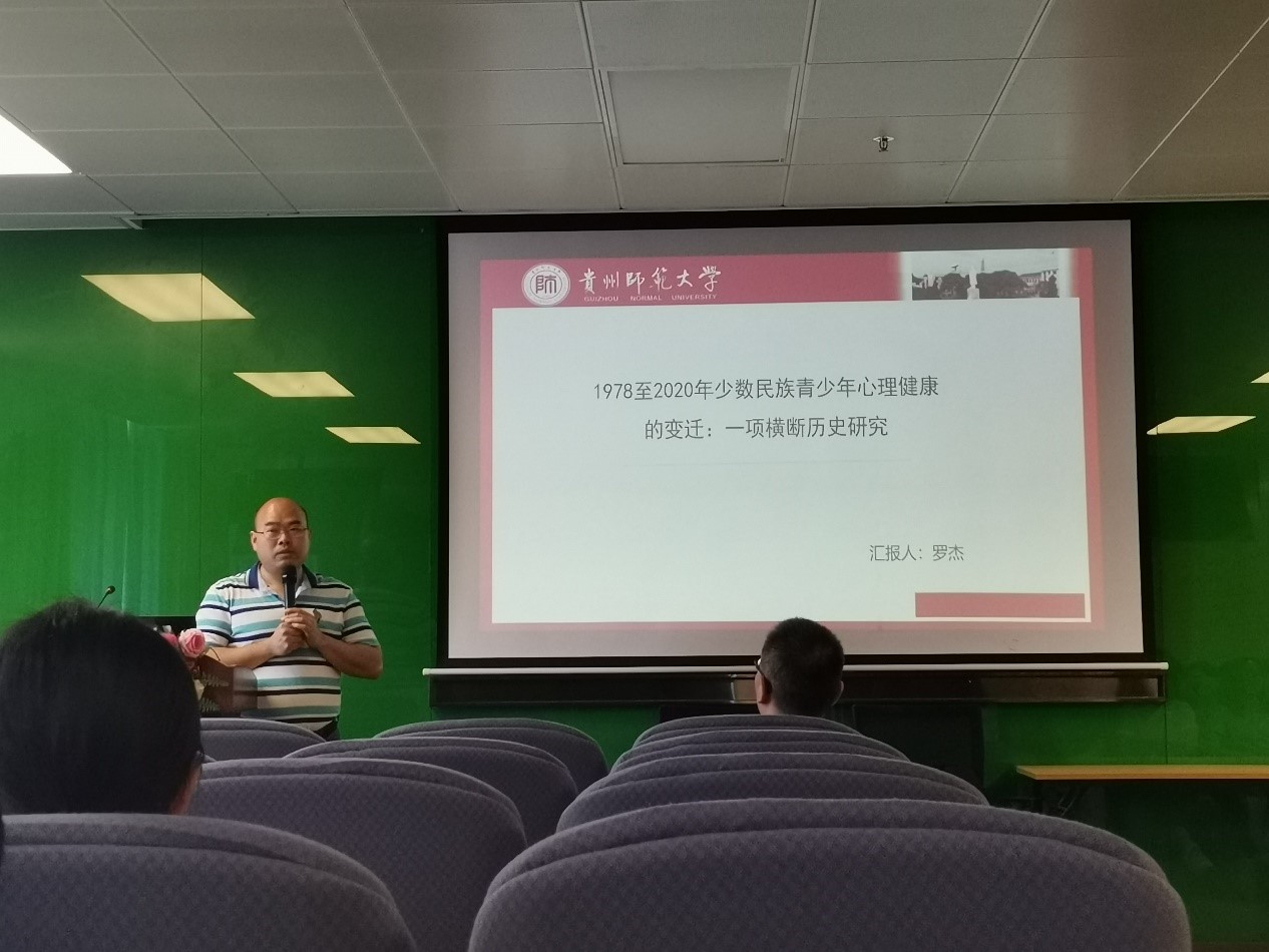 2008级校友罗杰(现为贵州师范大学副教授)作了题为“1978至2020年少数民族青少年心理健康的变迁:一项横断历史研究”的报告,采用横断历史的元分析方法探讨少数民族青少年心理健康水平随年代的纵向变化趋势,提出了社会、学校和家庭应该多关注青少年心理健康,青少年自身也应培养良好习惯,学会自我调节。