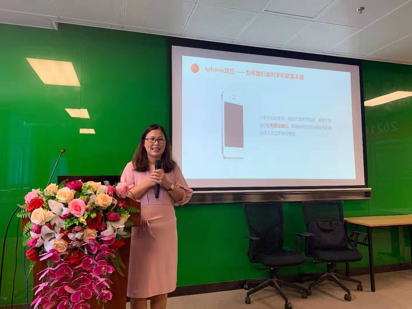 2005级校友高秋凤(现为深圳大学法学院副教授)作了题为“青少年手机成瘾的预防及干预”的报告,介绍了手机成瘾对青少年造成的影响、青少年手机成瘾现象的影响因素、相应的干预方法及管理对策。