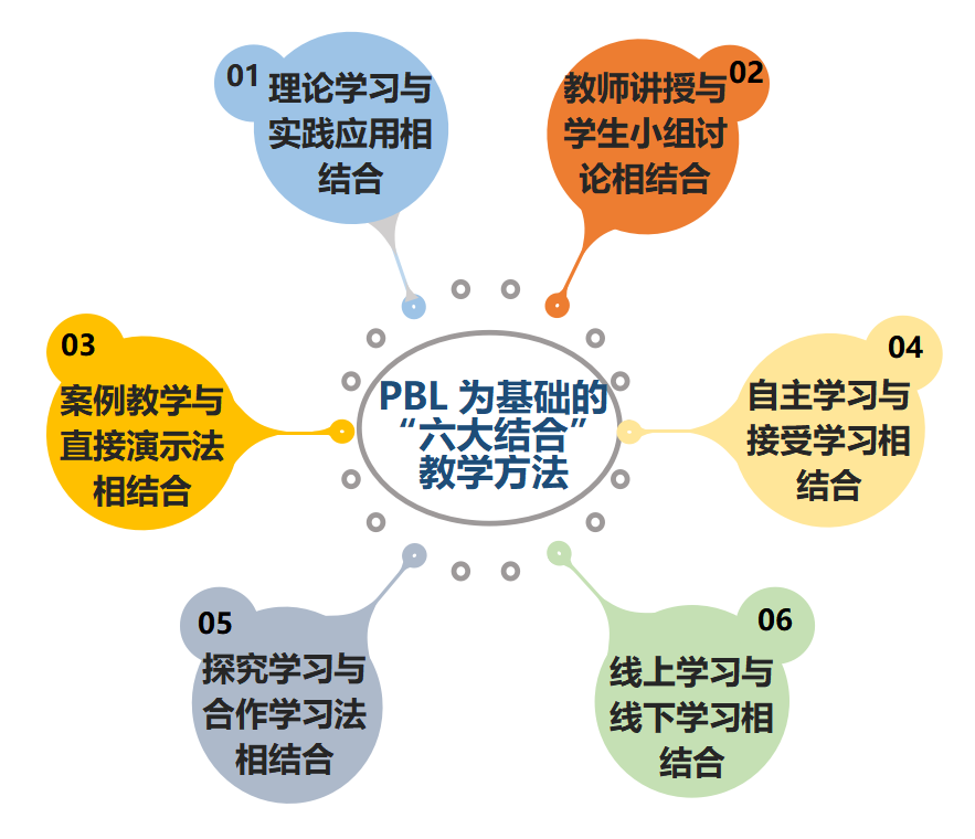 本课程以PBL(Problem-based Learning),基于问题为导向的教学方法为基础,借助现代网络媒体技术,采用“六个结合”的具体教学方法(图2),充分调动和激发学生的学习兴趣和思维活力、发掘学生的学习内驱力。