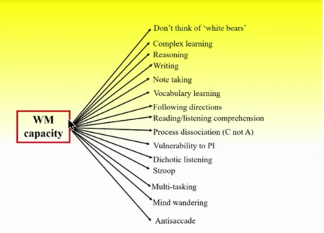 Randall W. Engle教授首先引入了工作记忆容量的概念,提出工作记忆容量在一些任务的处理中作为一种特质变量存在,即个体表现出的在任务处理能力上的不同与其工作记忆容量的差异具有较强的相关性;但在一些情况下,工作记忆又作为状态变量而存在,睡眠剥夺、压力状态等都可能导致工作记忆容量的变化。而后Randall W. Engle教授以一项研究导入,指出工作记忆容量与解决相关创新问题能力的流体智力有着很强的关联。工作记忆容量任务考察对信息的维护,而流体智力任务考察对信息的脱离,这对立的两者却共同需要注意的参与——工作记忆容量与流体智力的高相关性是个体注意控制能力差异的结果。在此基础上,Randall W. Engle教授提出注意控制在工作记忆容量和流体智力间起调节作用的设想,从而导向了本次讲座的核心问题——如何最好地测量注意控制。