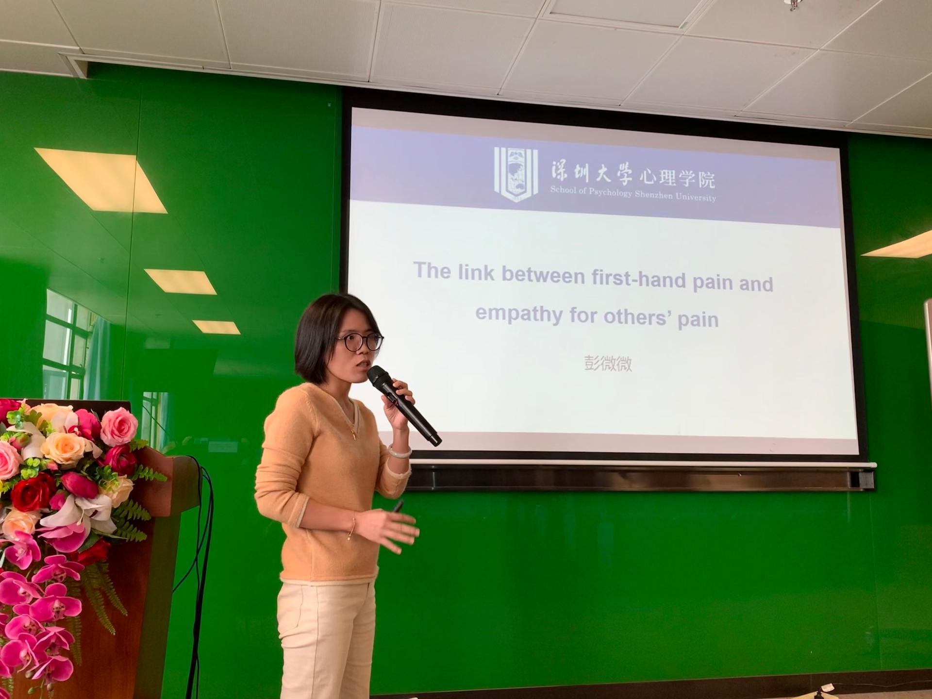 吴健辉教授主持了下午的会议,共有七位青年教师进行学术报告,主题包括认知、语言、学习与脑科学等。按先后顺序,分别是我院彭微微副教授题为“The link between first-hand pain and empathy for others’ pain”的报告、段炼助理教授题为“基于近红外成像静息功能连接预测状态焦虑”的报告、魏涛助理教授题为“口语产出过程中的词汇提取机制研究:来自心理语言学和fMRI的证据”的报告、张浩波助理教授题为“睡眠、抑郁与老年认知”的报告、脑疾病与认知科学研究中心李何慧博士题为“Neural correlates of reading difficulties in the second language: Evidencefrom Mandarin-speaking children learning English”的报告、徐敏副教授题为“汉语句法与语义信息的神经表征”的报告,以及我院江荣焕助理教授题为“抑制控制对数学策略灵活性的作用”的报告。