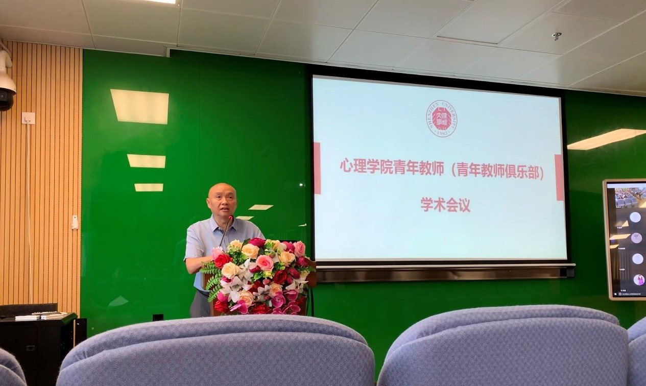 紧接着由深圳大学脑疾病与认知科学研究中心主任罗跃嘉教授作主题讲话。罗教授从科研角度强调了青年教师自身准确定位与把握方向的重要性,同时也对心理学科进一步高速度、高质量地发展提出了建设性的意见与建议,罗教授还勉励青年教师们在研究上要更加精进、多花时间、肯下苦功夫。罗教授最后祝愿会议取得圆满成功,祝福青年教师们在科研和教学道路上取得更大的成绩,为心理学科的长足发展做出个人贡献。