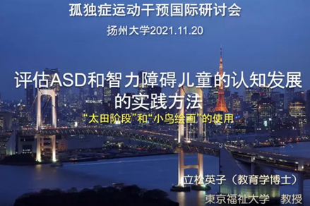 东京福祉大学Eiko Tatematsu教授讲述了评估孤独症及智力障碍儿童的实践方法——“太田阶段”、“小鸟绘画”,让参与者感受到了干预方法的多样性及实用性。