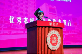 本科优秀毕业生代表张雨瑄、研究优秀毕业生代表梁凯欣分别代表毕业生发言。张雨瑄回顾了自己的大学历程,感谢老师们前辈们的引导、鼓励与支持,对充满未知的未来满怀期待。梁凯欣表达了老师们辛勤付出、学院各类资源支持的感激,希望自己与学院共成长。
