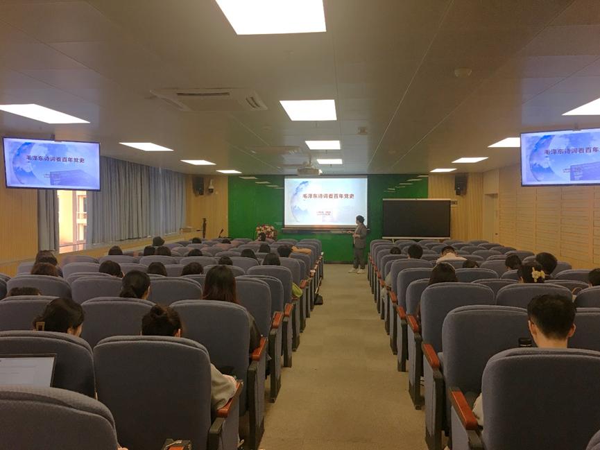 ▲党委书记章鲁楠讲授《毛泽东诗词看百年党史》党课