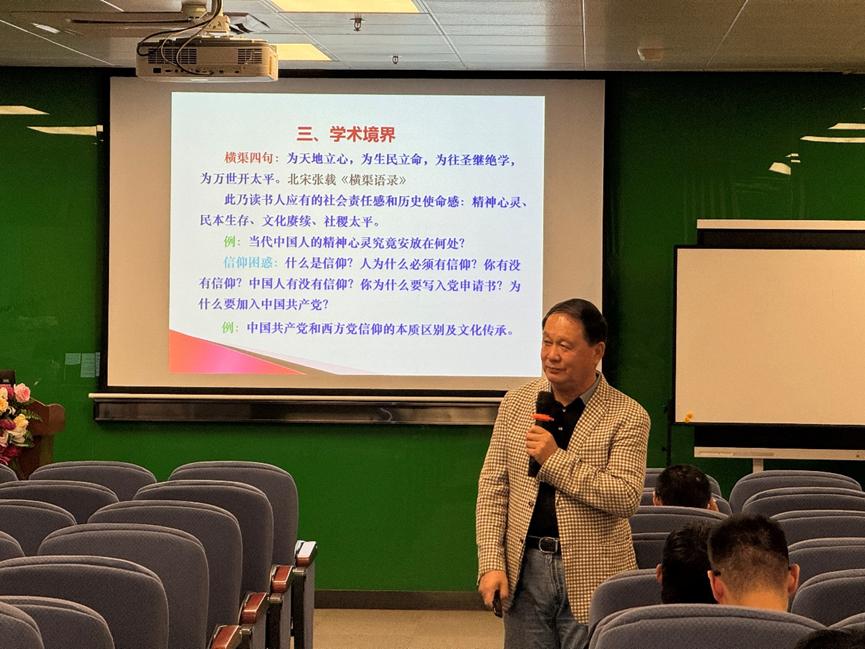 ▲王晓钧教授讲授《学术境界与人生发展》专题党课