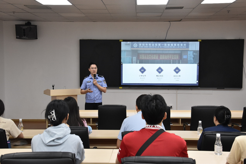 5月23日上午,心理学院党委书记章鲁楠、副书记高亮带队,一行15人前往深圳市司法局第一强制隔离戒毒所(以下简称“深圳一所”)开展党纪学习教育。